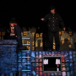 U lutkarsko-glumačkoj predstavi Na krovu odgovore će vam dati tri dimnjačara. Provodeći svoj uobičajeni i nepredvidivi radni dan, ispod oblaka među pticama, gledajući svijet s visokoga krova. Svaki od dimnjačara karakterno je različit, ali ih spaja isti životni cilj – pronaći sreću.