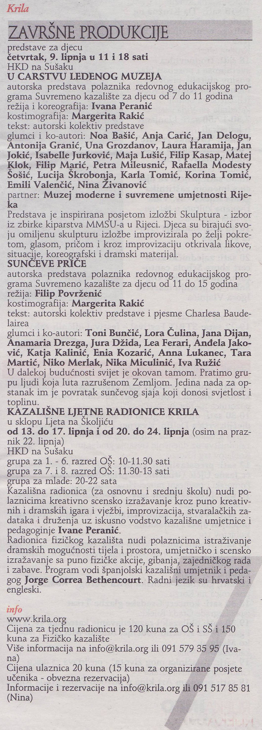 Završne produkcije edu programa (lipanj 2016. Rijeka Info)